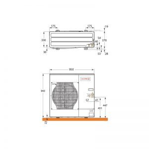 | Išorinio bloko išmatavimai | 330 × 950 × 943 mm |